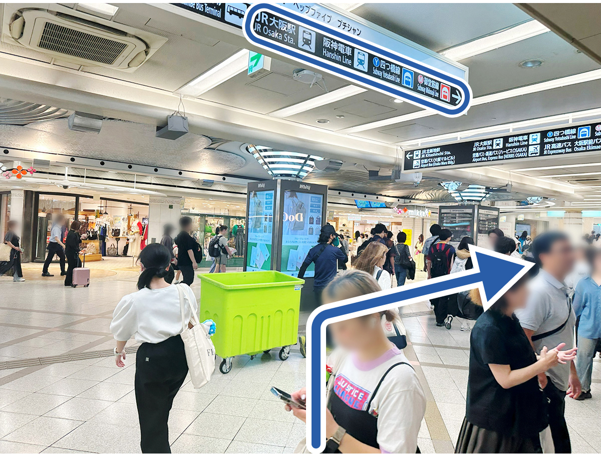 大阪駅前地下駐車場からエレベーターで直結でお越しいただけます。